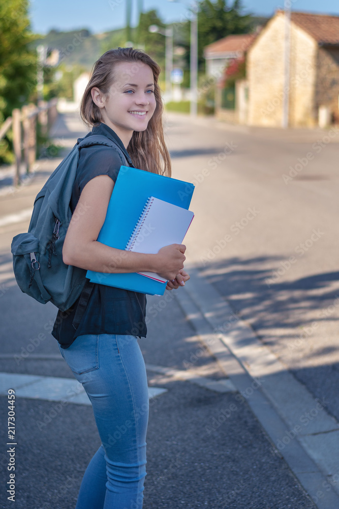 Girl with store school bag